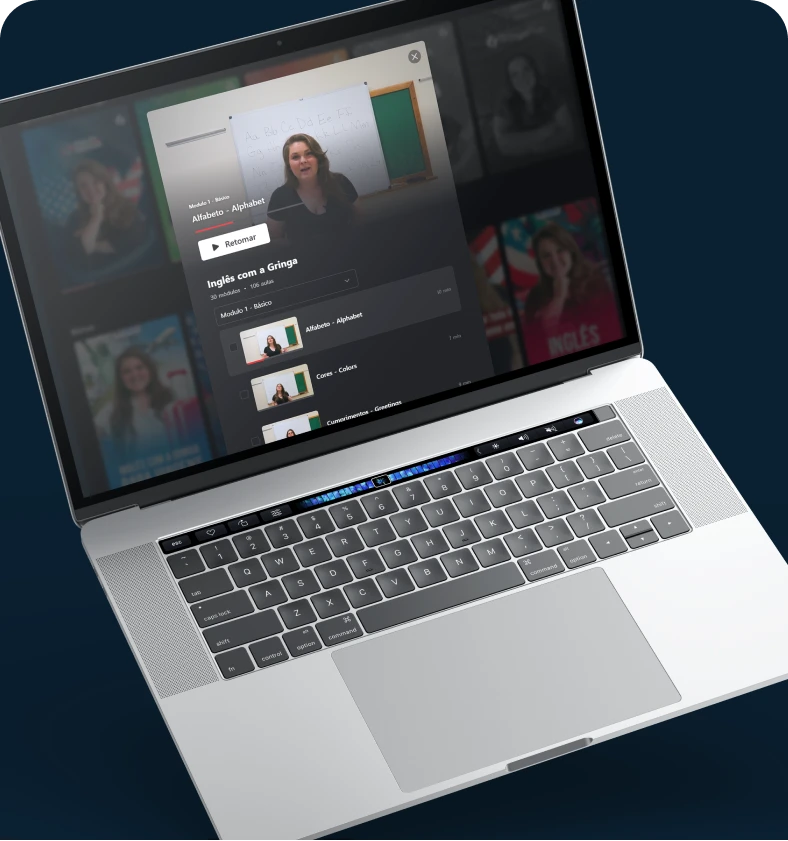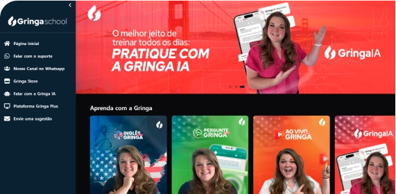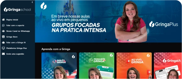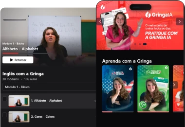 A plataforma do Inglês com a Gringa foi criada para que você tenha uma experiência leve, prática e envolvente, com tudo organizado passo a passo.